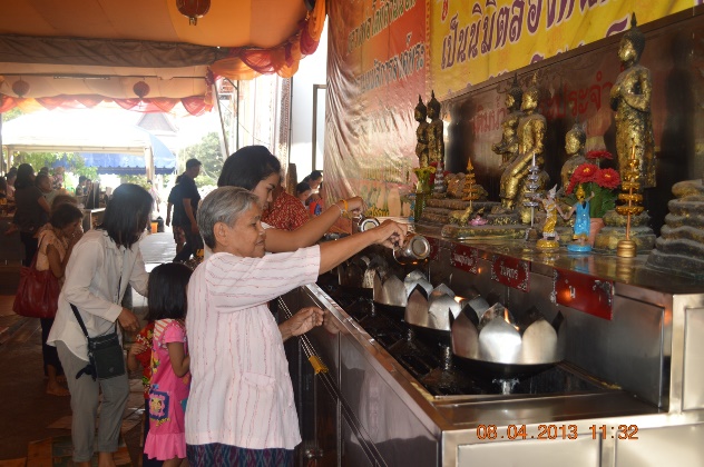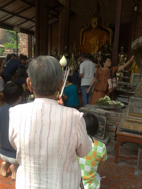 ย่านั่งลำบาก คนก็เยอะด้วยเลยใช้ยืนไหว้แทน
