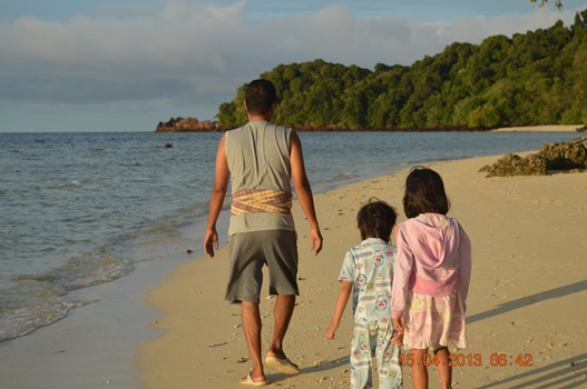 บรรยากาศตอนเช้าที่เกาะสวยงาม อากาศเย็นสบายเด็กๆเล่นน้ำก่อนขึ้นเรืออีกรอบ