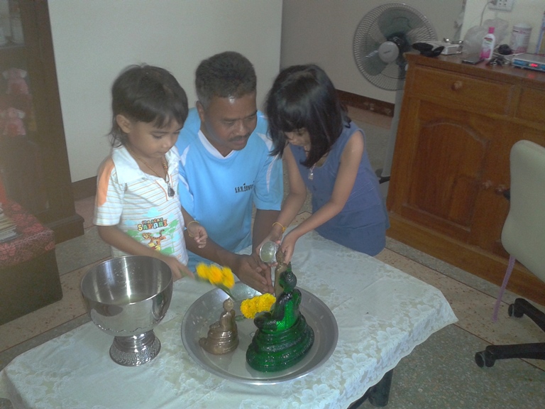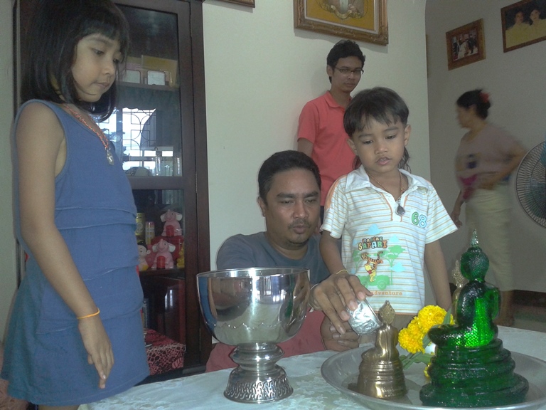 ให้เด็กสรงน้ำพระกับรดน้ำดำหัวลุงต้อยด้วยเลย