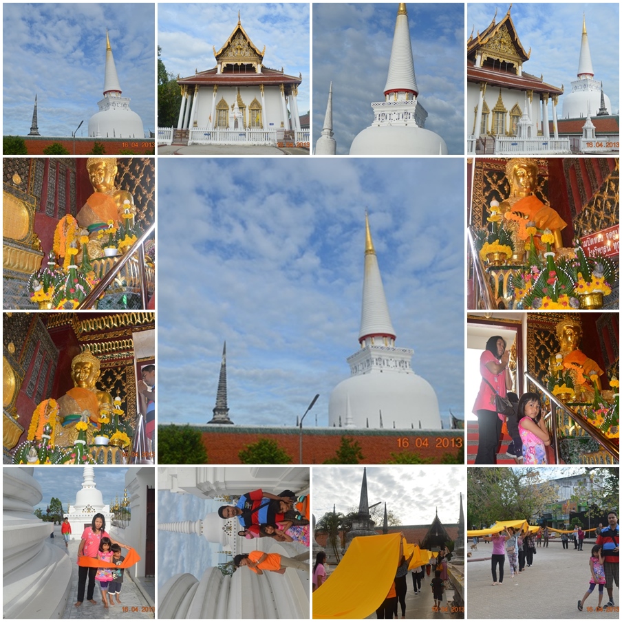 เช้าวันที่ 16-04-56 ตื่นแต่เช้าเตรียมตัวกลับสระบุรี ใช้เส้นทางเข้ามาตัวเมืองคอน แวะไหว้พระธาตุ ไหว้องค์จตุคามรามเทพ แห่ผ้ารอบพระธาตุ วันนี้มีนักท่องเที่ยวชาวจีนแห่ผ้าห่มรอบพระธาตุด้วยเลยทำบุญร่วมกันเสียเลย