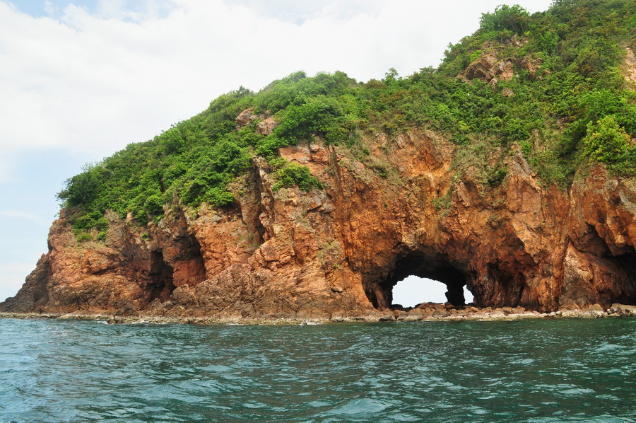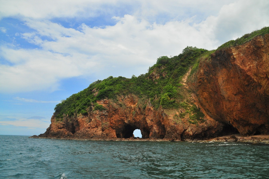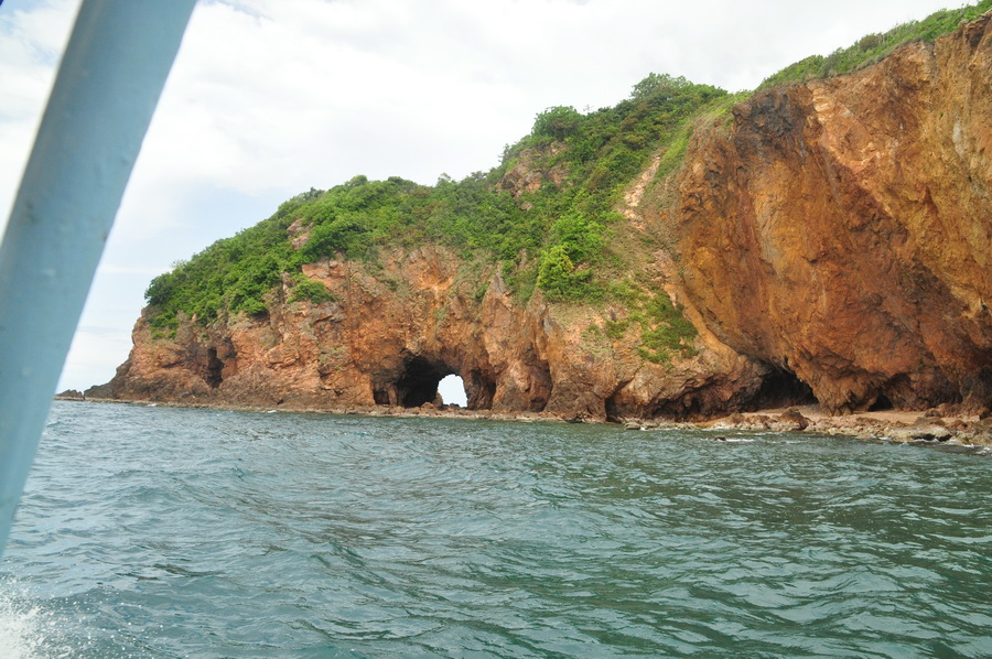 ออกเรือมาสัก ครึ่งชั่วโมงก็มาถึงเกาะทะลุ อันลือชื่อของประจวบ ตอนนี้คลื่นลมแรงมากฝนตกด้วยอ่ะ