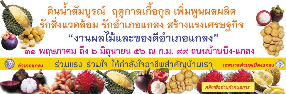 เชิญร่วม งานผลไม้และของดี อ.แกลง จ.ระยอง วันที่ 31 พค - 6 มิย 56
