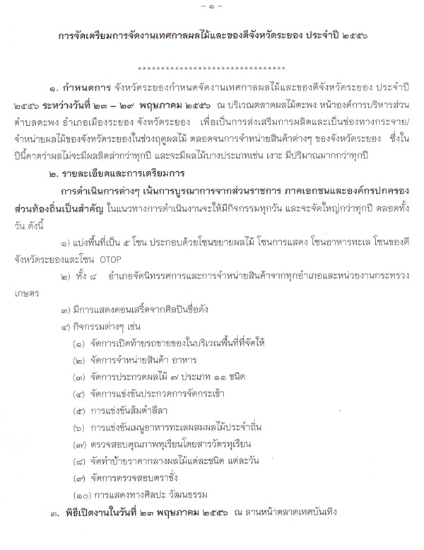 ยิ่งใหญ่กับงานผลไม้จังหวัดระยอง 23 พค 56 พิธีเปิด ยิ่งใหญ่ กิจกรรม การแสดง สินค้า ผลไม้ มากมาย .. ทั้งยังจัดงานถนนยมช่วงเย็นในวันเดียวกัน ..ตกดึกได้เดินเล่นถนนยมจินดาแถมได้ดูพลุ ที่สวนสีเมืองสามพันกว่านัด