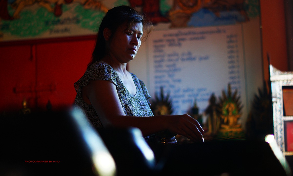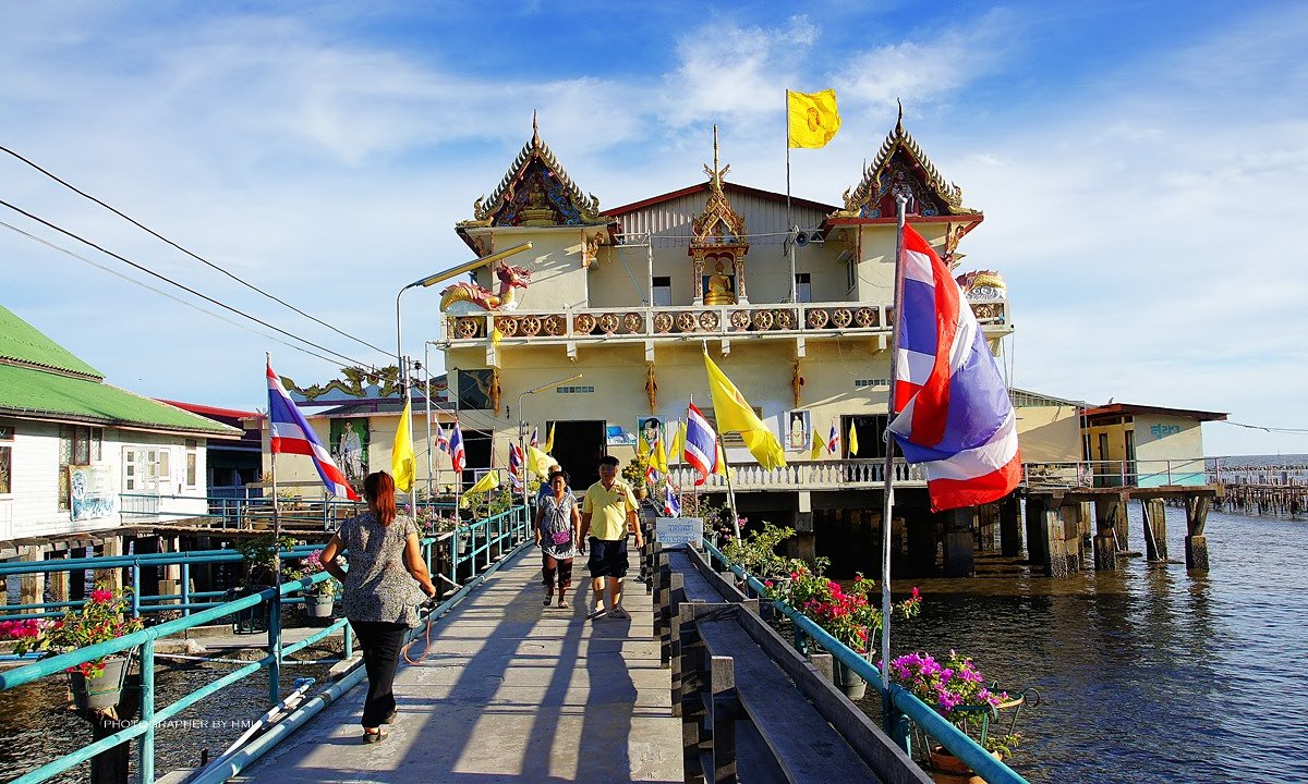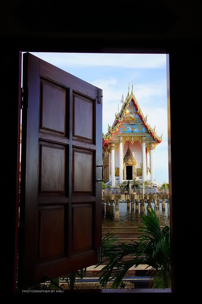 พระกำลังไปสวดมนต์ ที่โบสถ์กลางน้ำ