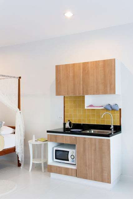 อันนี้เต็มมากทั้งไมโครเวฟ กาน้ำร้อน จาน ช้อน ส้อม แก้ว ฯลฯ