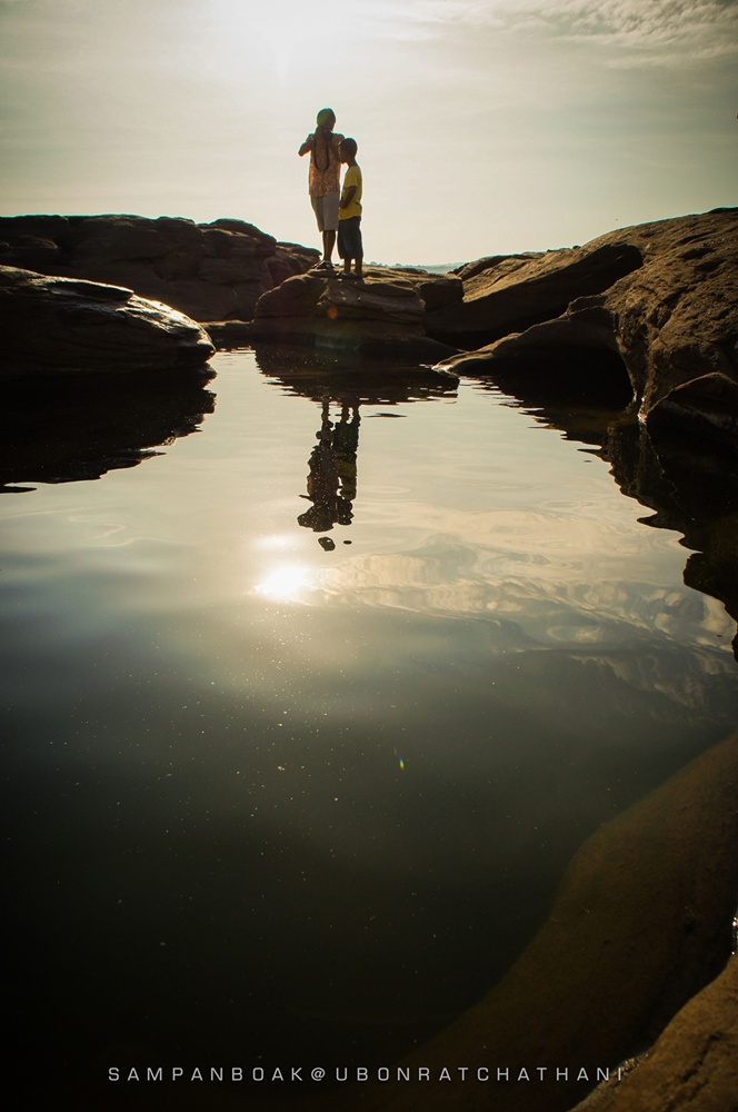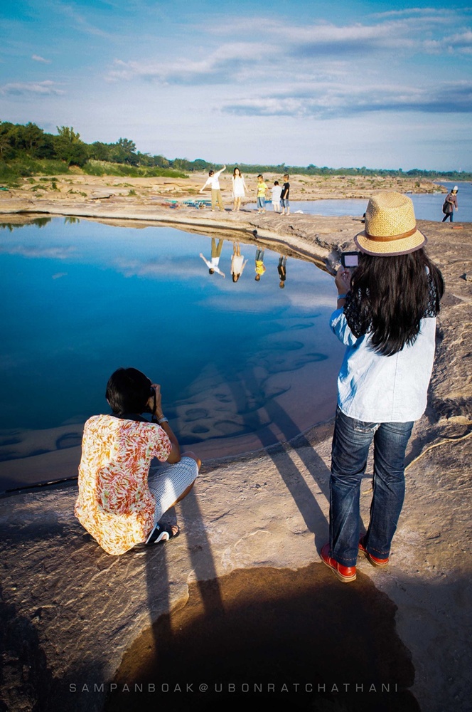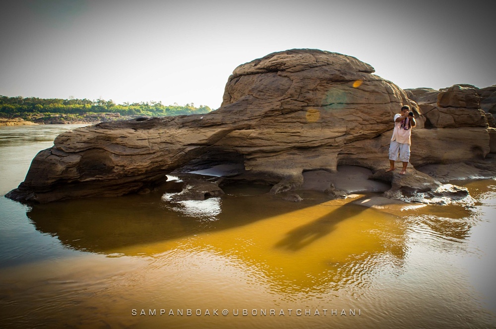 ล่องเรือมาจนถึงสามพันโบก unseen thailand ของจังหวัดอุบลราชธานี จากที่เคยเห็นในรูปพอมาเห็นของจริงต้องบอกว่ามันอลังการกว่าในรูปที่เห็นมากแล้วก็เกิดข้อสงสัยว่าทำไมหินจึงกลายเป็นโบกเช่นนี้ได้