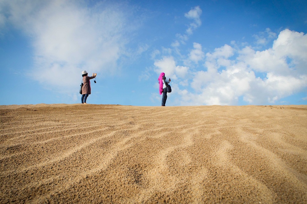 แต่! พอเห็นหาดหงส์เท่านั้นแหละเอาก็เอาจะร้อนขนาดไหนก็สู้ ก็มันเหมือนทะเลทรายขนาดย่อมจริงๆนะคะยิ่งเรามาเช้าไม่ค่อยมีนักท่องเที่ยวมาเดินหาดทรายมันจึงริ้วๆเหมือนทะเลทรายเลย ในประเทศไทยคงมีไม่กี่ที่ ที่จะมีลักษณะภูมิประเทศแบบนี้ในเมื่อเรามาถึงที่แล้วจะไม่ไปชมก็กระไรอยู่