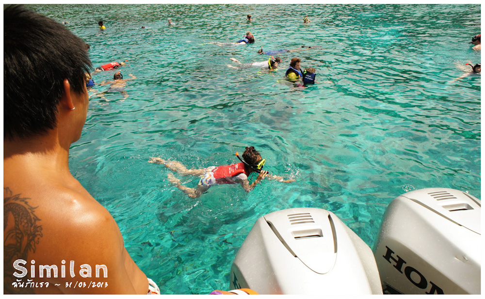 อยากจะบอกว่าจริงๆว่ายน้ำไม่แข็งแต่เห็นน้ำทะเลแล้วมันอดใจไม่ได้จริงๆ เพื่อนก็ไม่ลง ต้องขอร้องอ้อนวอนพี่ไกด์บอกว่าพาไปดำน้ำหน่อยซิ เค้าก็เลยจัดให้ลากไปลากมาแต่สุดท้ายเค้าก็ปล่อยเราลอยตุ๊บป่องอยู่คนเดียว