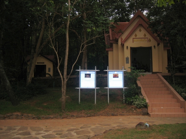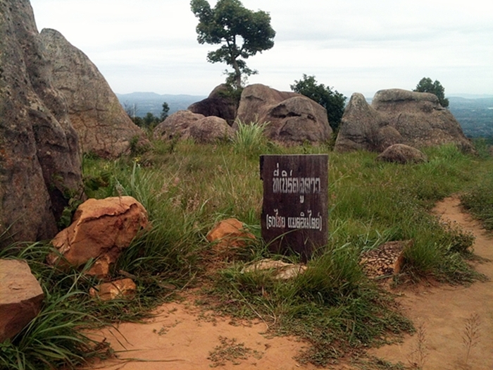 ระหว่างเดินเลียบหน้าผาเราก็ได้พบรอยพระพุทธบาทที่มีพระสงฆ์และชาวบ้านไปสักการะ เราเองก็อดเสียมิได้