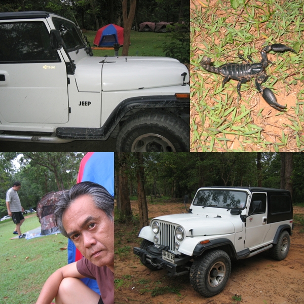 เราถูกนักเลงเจ้าถิ่นมาทักทายเมื่อไปถึงยามพลบค่ำขณะกางเ็ต็นท์ เ้จ้าแมงป่องตัวเขื่อง สถานที่กางเ็ต้นท์ลานกว้างเป็นพื้นหญ้าห้องน้ำสะอาดนักท่องเที่ยวไม่มาก