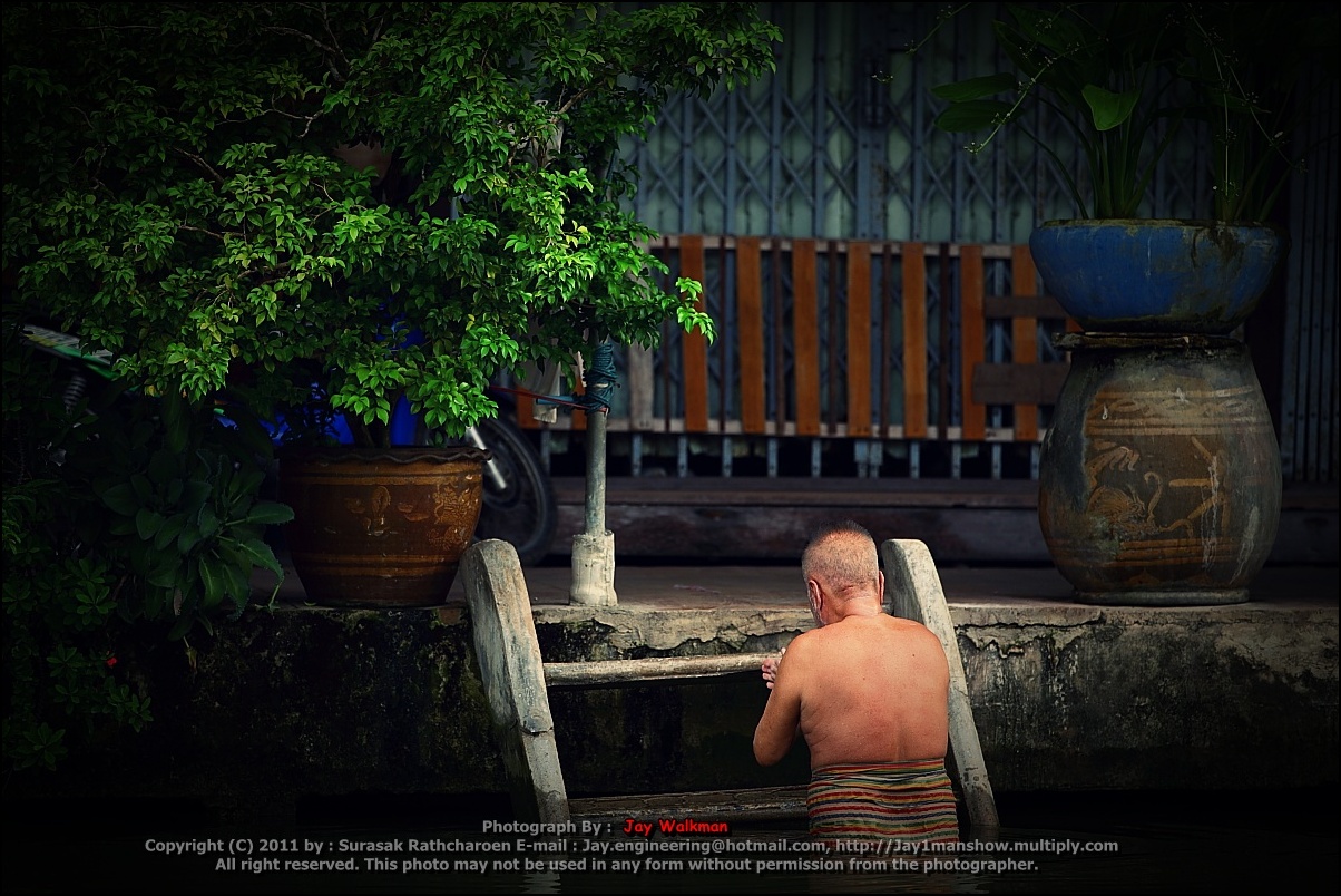 ใครไปเป็นประจำก็จะเก็นคุณลุงคนนี้ ลงอาบน้ำในคลอง อัมพวาทุกวันครับ บางวันก็พาหมาที่แกเลี้ยงไว้มาอาบน้ำ
