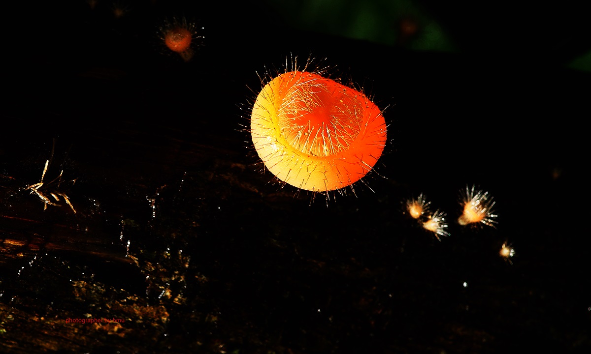 เห็ดขนก็มี เกิดที่ราวสะพาน เจ้าหน้าที่เอาไม้มาเค้ำราวสะพาน หันด้านที่มีเห็ดขนลง เห็ดขนเหลืองเต็มราว แต่หัวทิ่ม