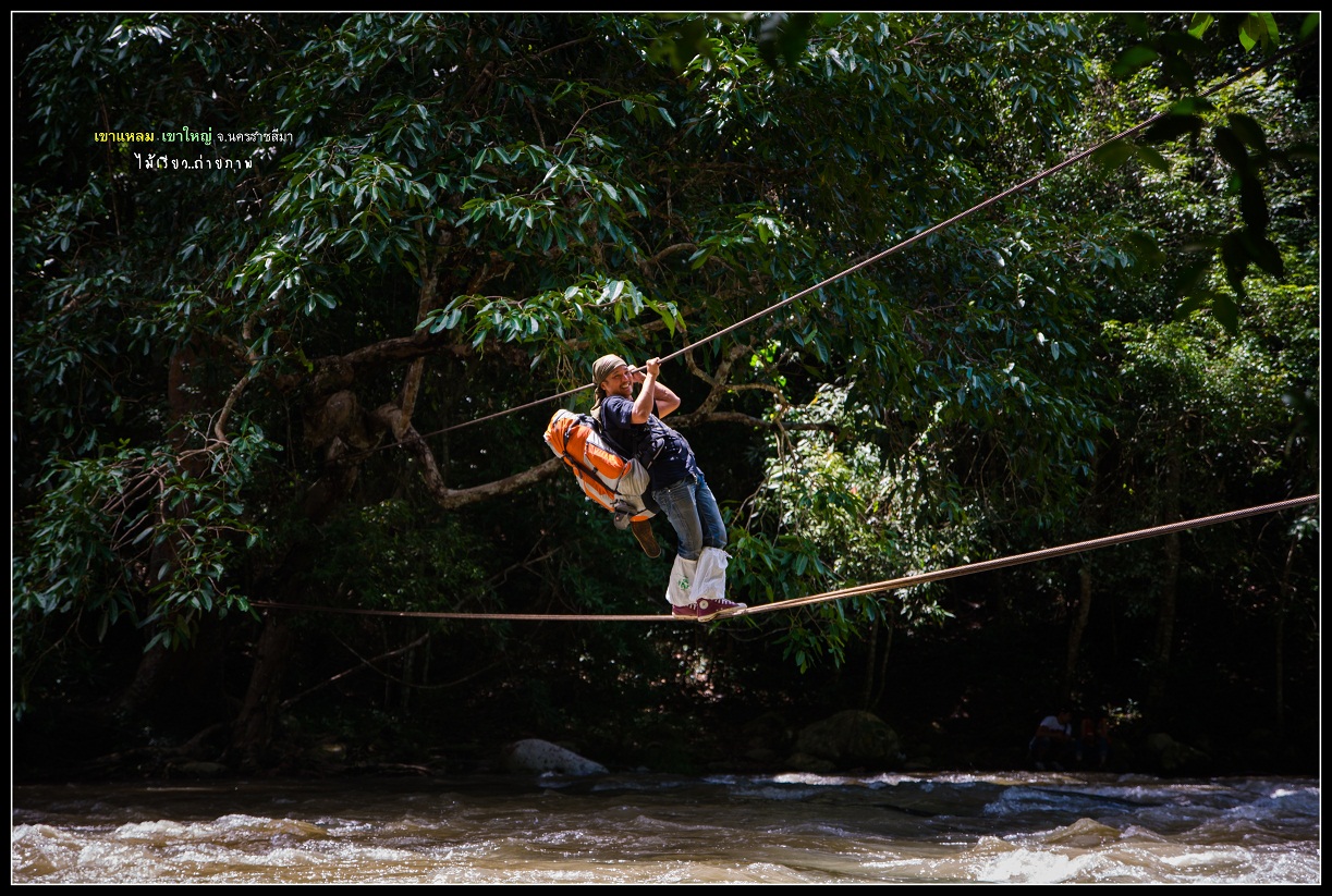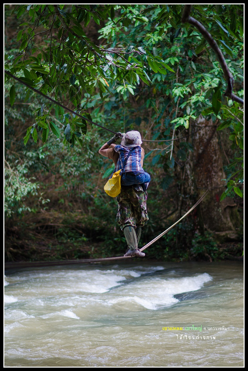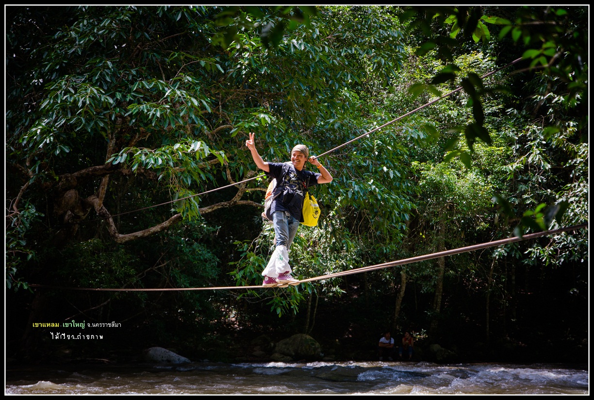 ภาพมุมกว้างแบบนี้..จะเห็นได้ว่าระยะทางข้ามลำห้วยนั้นมันช่างไกลเสียเหลือเกิน ตอนอยู่บนสลิงคิดตลอดเมื่อไหร่มันจะถึงสักที พอสลิงแกว่งก็ต้องหยุดการเคลื่อนไหว ทรงตัวให้สลิงหยุดแกว่ง ช่วงของเวลานั้นแหละครับ โอ้ย! สุดๆ