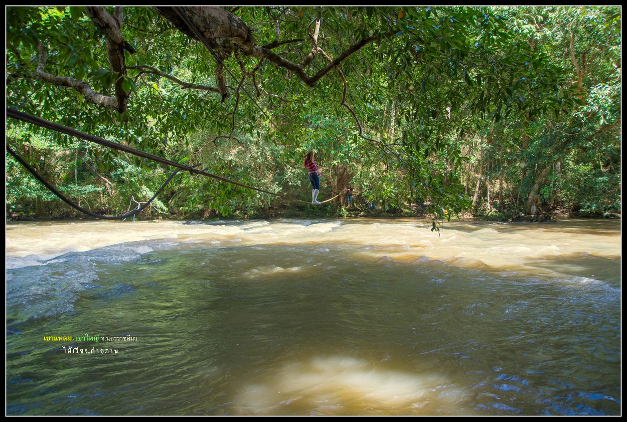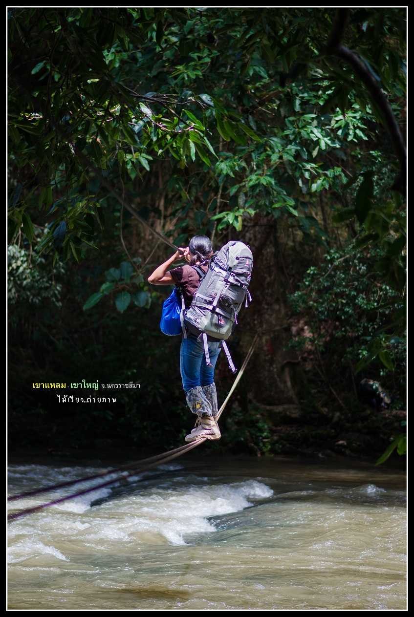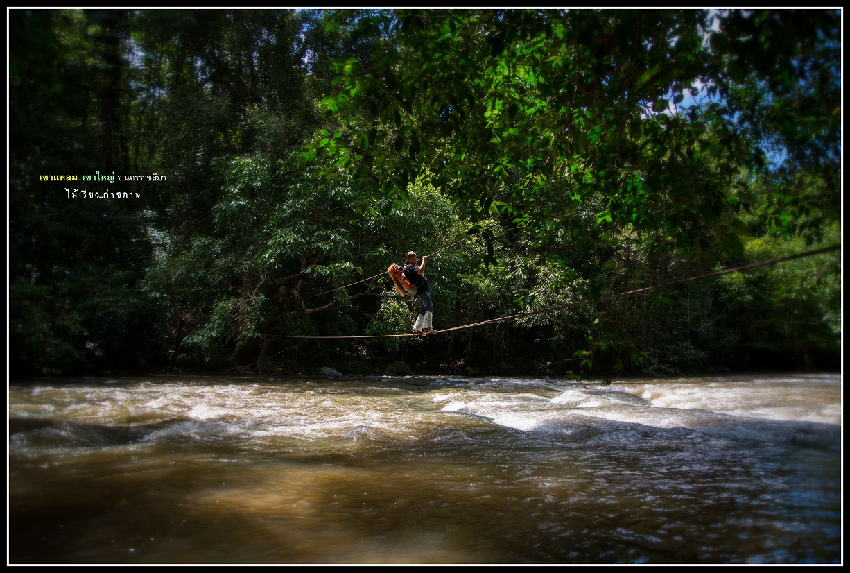 ภาพมุมกว้างแบบนี้..จะเห็นได้ว่าระยะทางข้ามลำห้วยนั้นมันช่างไกลเสียเหลือเกิน ตอนอยู่บนสลิงคิดตลอดเมื่อไหร่มันจะถึงสักที พอสลิงแกว่งก็ต้องหยุดการเคลื่อนไหว ทรงตัวให้สลิงหยุดแกว่ง ช่วงของเวลานั้นแหละครับ โอ้ย! สุดๆ