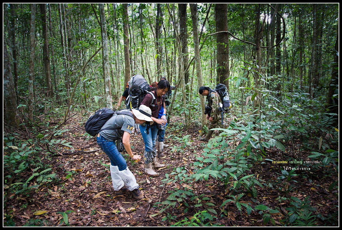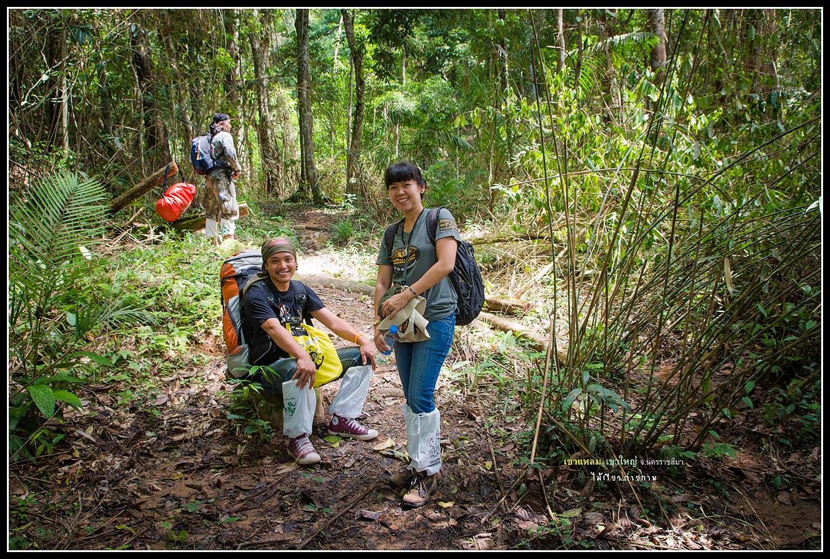 เดินกันมาได้ครึ่งทาง พวกเราก็หยุดพักเหนื่อย..เจ้าถิ่นก็มาค่อยตอนรับรับตลอดทาง ตามพื้นก็จะมีทาก คอยที่จะดีดตัวเข้าหาเรา แต่อากาศในป่านั้นสดชื่นมาก ไม่ร้อนเย็นสบายดีจัง