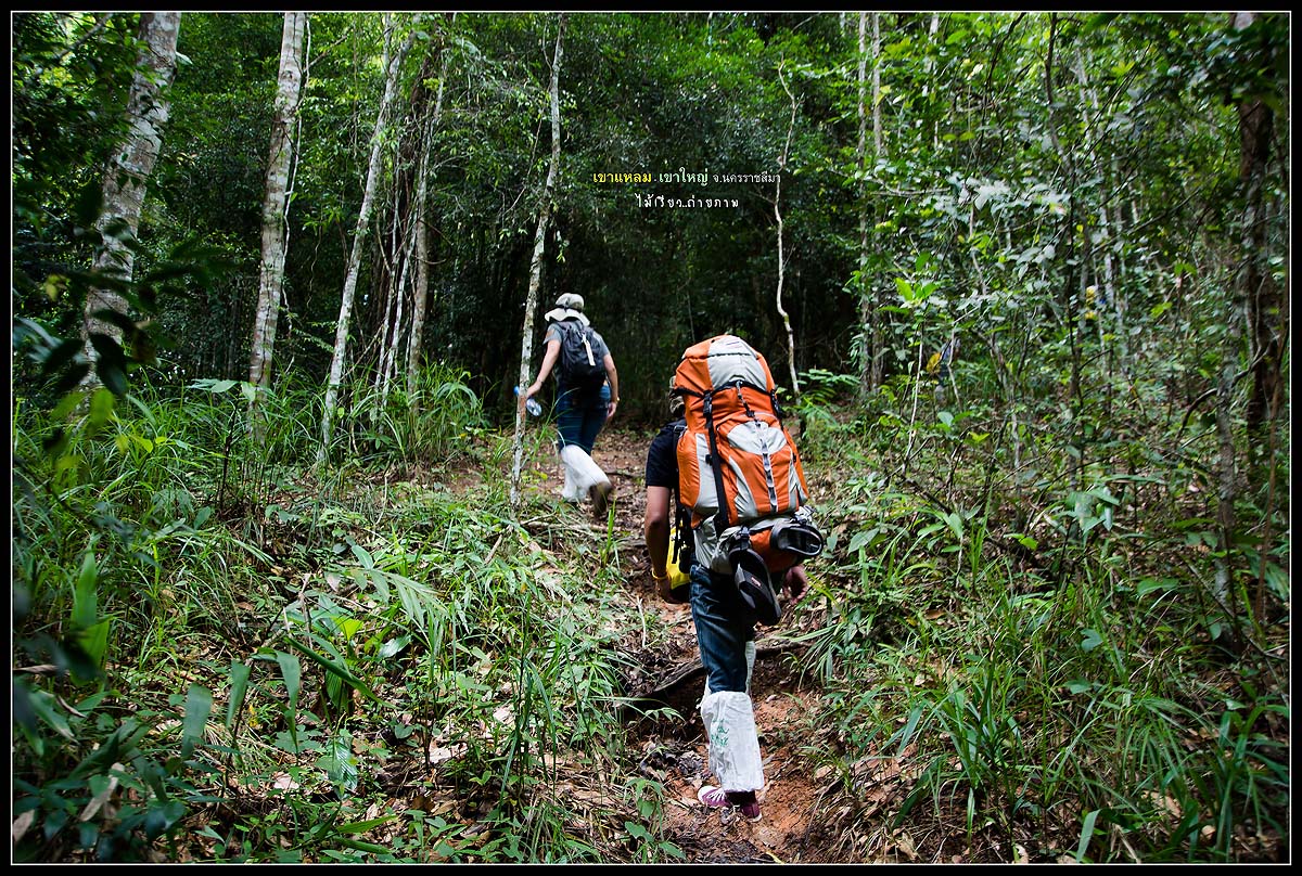 เมื่อหายเหนื่อยแล้ว..เดินกันต่อ การเดินป่านั้น สิ่งที่สำคัญร่างกายต้องพร้อม จะต้องใช้กำลังขาค่อนข้างมาก ซึ่งเราจะต้องแบกน้ำหนักกระเป๋าเป้ที่หลังอย่างน้อยก็ประมาณสัก 15 - 20 กิโลกรัม พอเจอเนินชันๆ แล้วเหนื่อยเอาเรื่อง
