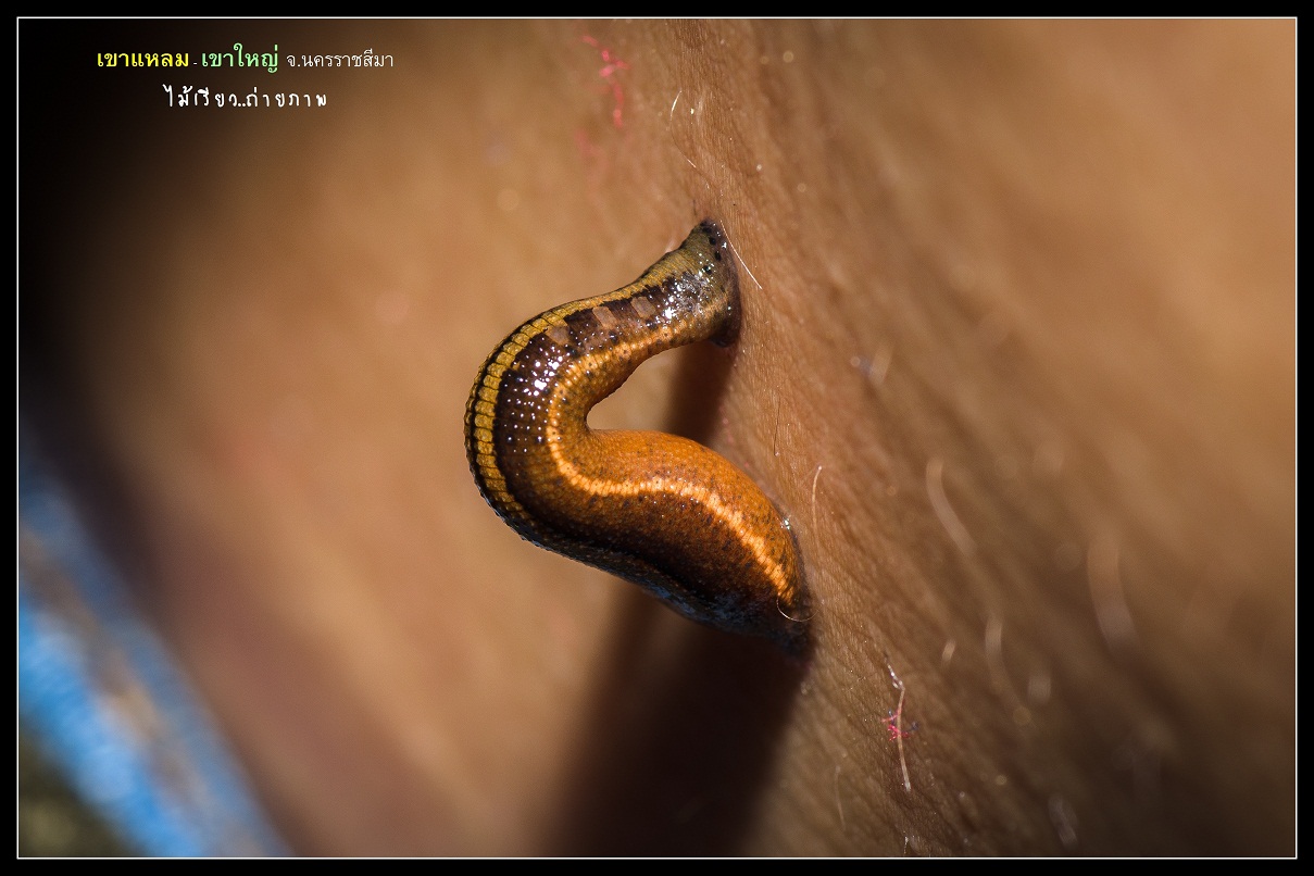 และแล้วเราก็เจอกับเจ้าตัวนี้ " ทากดูดเลือด " เค๊ากำลังทานแบบอร่อยเลยล่ะ ตัวนี้กำลังดูดดื่มอยู่ที่เอวของอุ้ม กระทิงน้ำซับ เส้นทางที่เราเดินนั้นก็จะมีทากอยู่ตลอดทาง บางช่วงก็จะชุกชุ่ม บางช่วงก็ไม่ค่อยมี