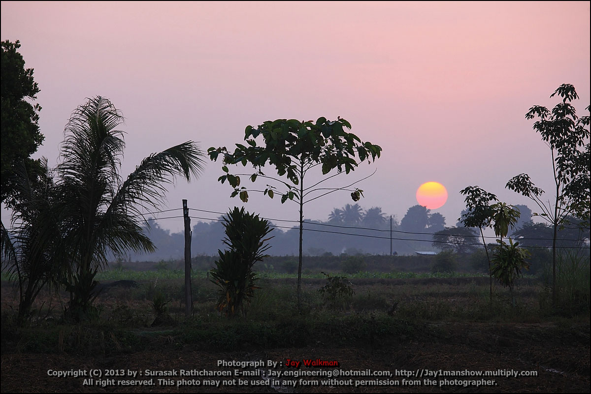 ตื่นตี 5 ขับลงมาจากดอยแม่สลอง มายังวัดถ้ำป่าอาชาทอง กว่าจะมาถึงก็ 6 โมงหน่อยๆ ไ้ด้เห็นดวงอาทิตย์ดวงโตระหว่างทาง