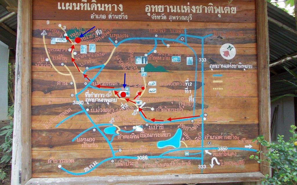 จอดรถถามเจ้าหน้าที่ เขาบอกเข้าไปได้ เป็นทางลูกรัง ไม่น่ากลัวอะไร ประมาณสิบโลจะึถึงที่ทำการพุเตย1
