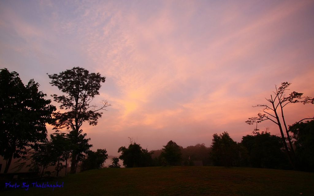 เช้าตื่นออกมาชมพระอาทิตย์ขึ้น โชคดีเช้านี้ฝนยังไม่ตก ฟ้าเปิดด้วย ดีใจๆ