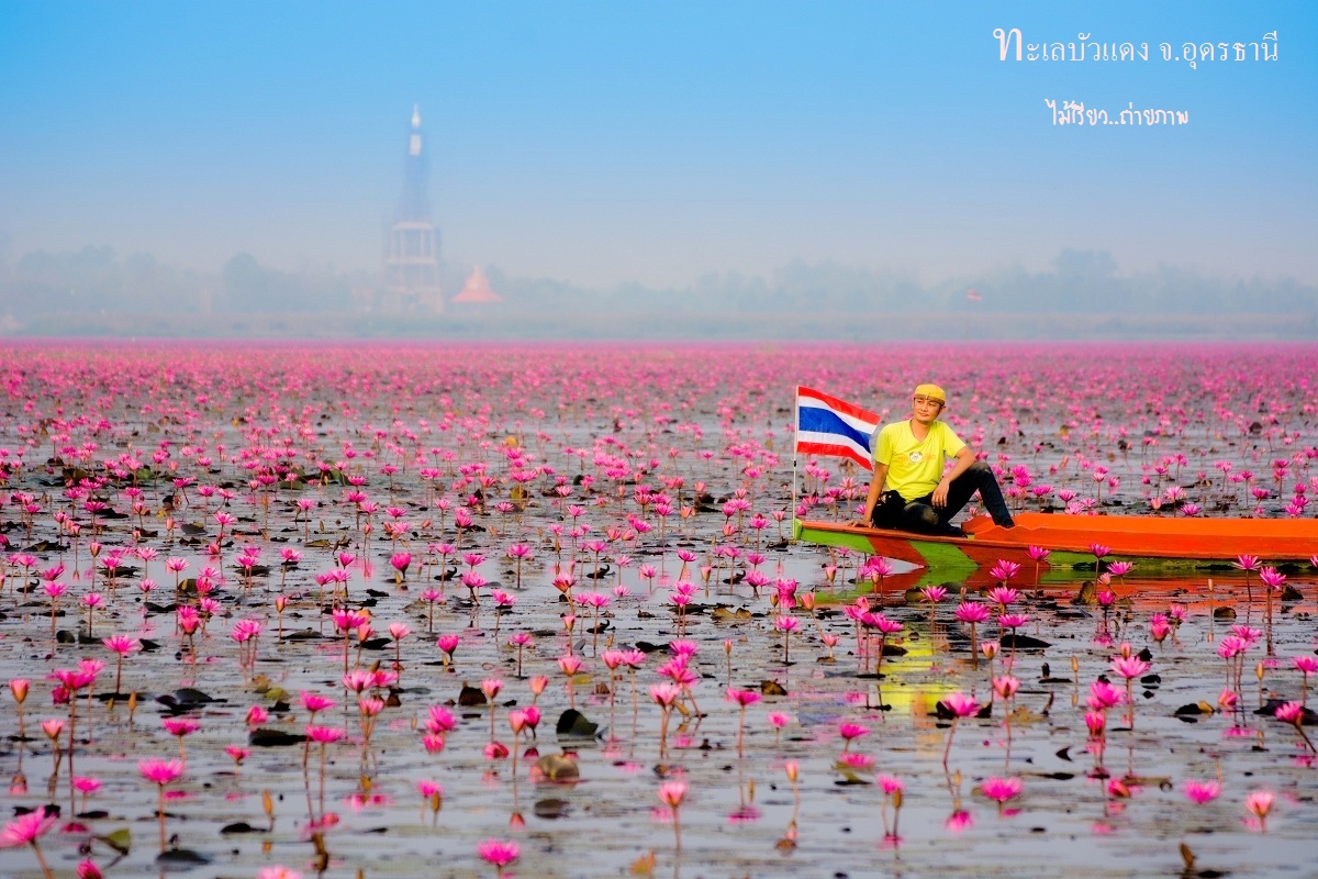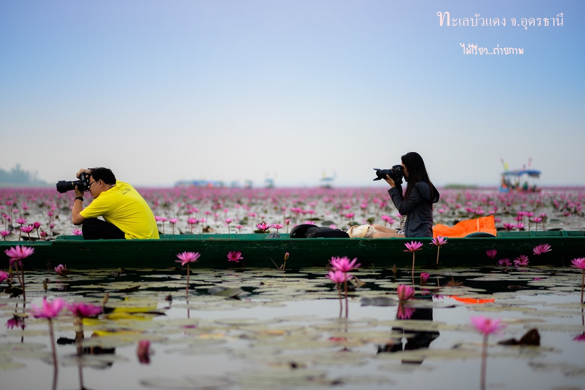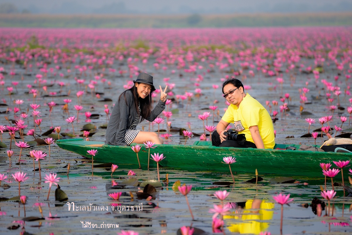 เรามาสัมผัส ทะเลบัวแดง หนองหานภุมภวาปี ที่ผมทราบข่าวจาก ททท. และขอหอบความประทับใจกลับไปบอกต่อ ด้วยความงามอันเป็นเอกลักษณ์ของดอกบัวที่ธรรมชาติรังสรรค์ สีชมพูของดอกบัวที่เบ่งบานขึ้นพร้อมๆ กัน ก็จะกลายเป็นภาพความงามอันวิจิตรสุดลูกลูกตาราว นี่คือ " ประเทศไทย " ดินแดนแห่งความโรมแมนติค หนองหานกุมภวาปี จ.อุดรธานี ลองให้มองภาพและจินตนาการตามผมนะครับ สิ่งที่ผมได้สัมผัสบรรยากาศแบบนี้และเก็บความรู้สึกนั้นมาเล่าให้ฟัง เรือแล่นผ่านสายน้ำยามเช้า สายลมเย็นๆ โชยมากระทบที่ใบหน้าล้อมรอบตัวเราด้วยโลกแห่งสีชมพู..