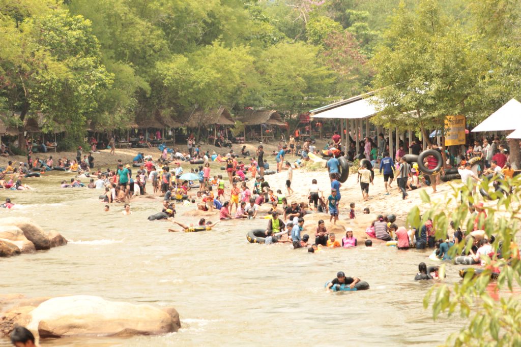 พอเริ่มสายๆ เขื่อนจะปล่อยน้ำมาครับ ผุ้คนก้อประมาณนี้
