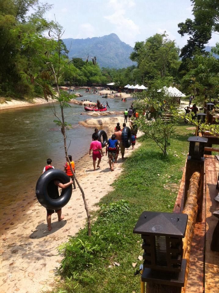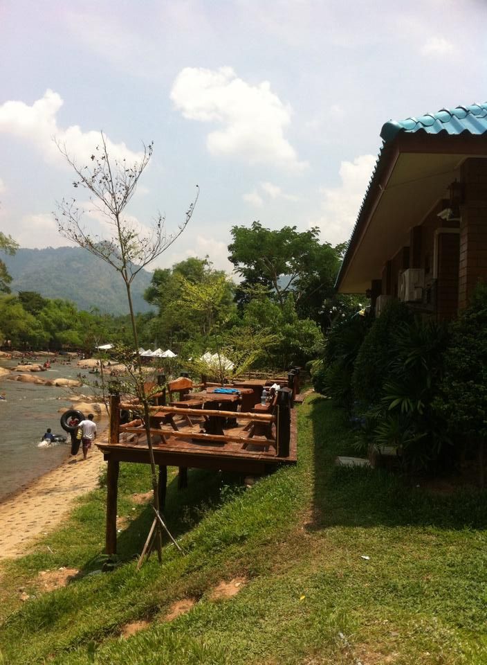 พอดีห้องที่จองมีระเบียงด้านหลังติดกับลำน้ำเลย