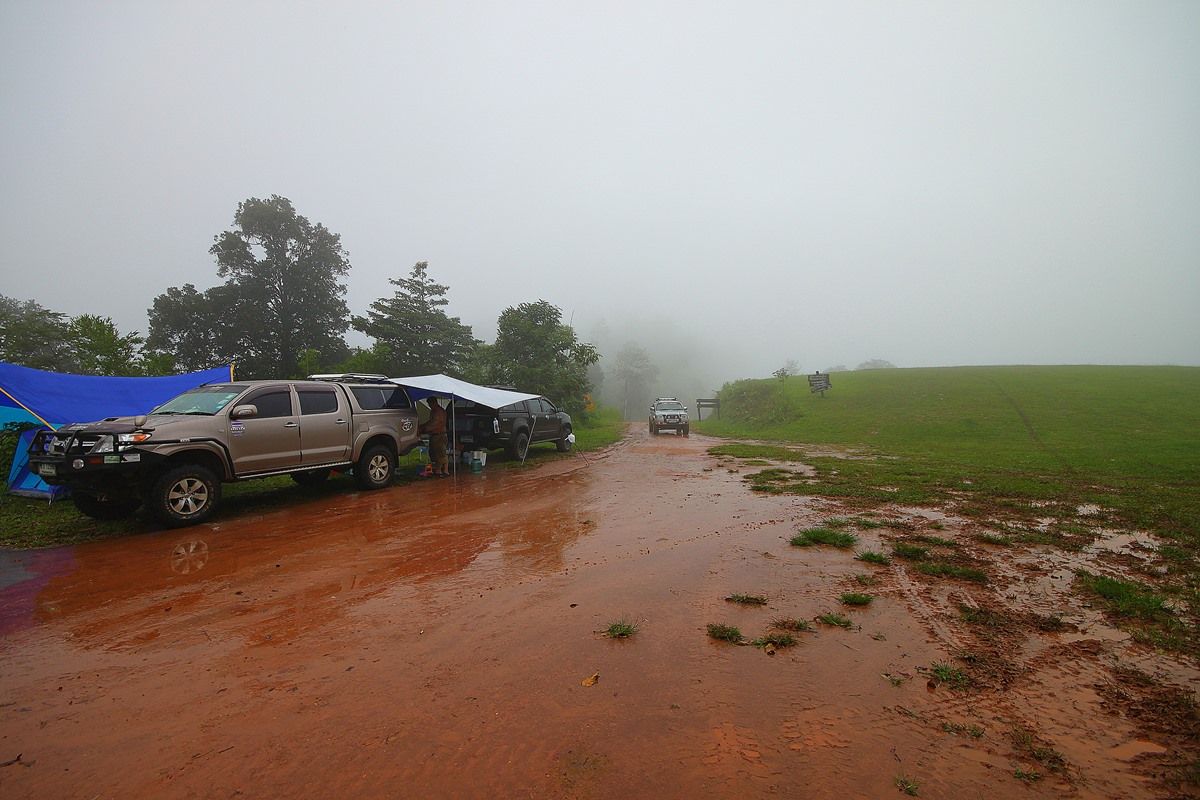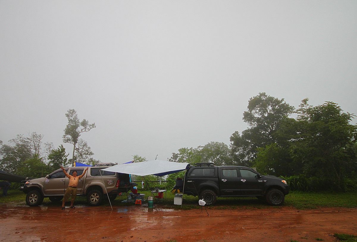 ถึงจุดแค้มป์ของพวกเราแล้วครับ ห้วยคอกหมู ฝนตกตั้งแต่ตอนขึ้นเขาเลยครับ