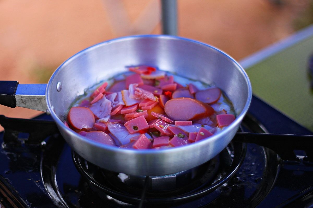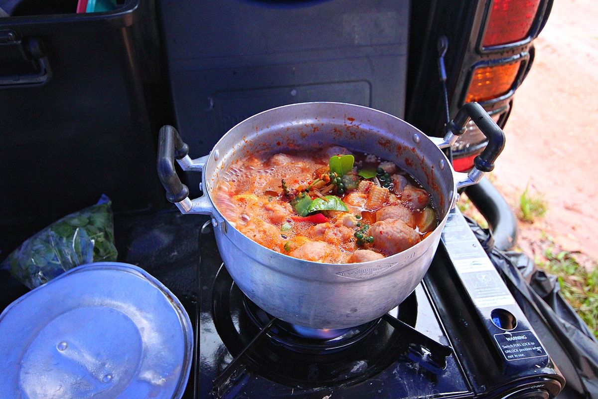 อาหารง่าย ๆ สำหรับชาวแค้มท์ครับ แกงป่าหมูเด้งครับ