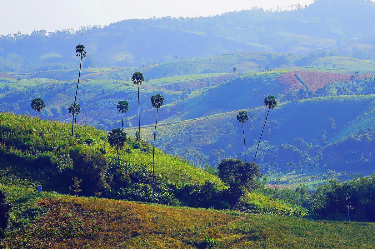 มีต้นค้ออยูเนินเขาไกลๆออกไป