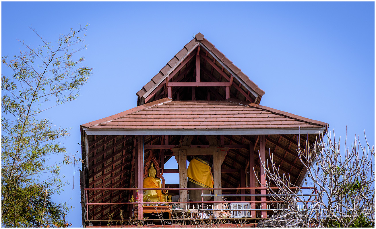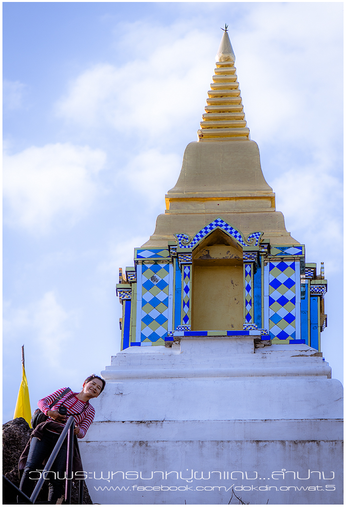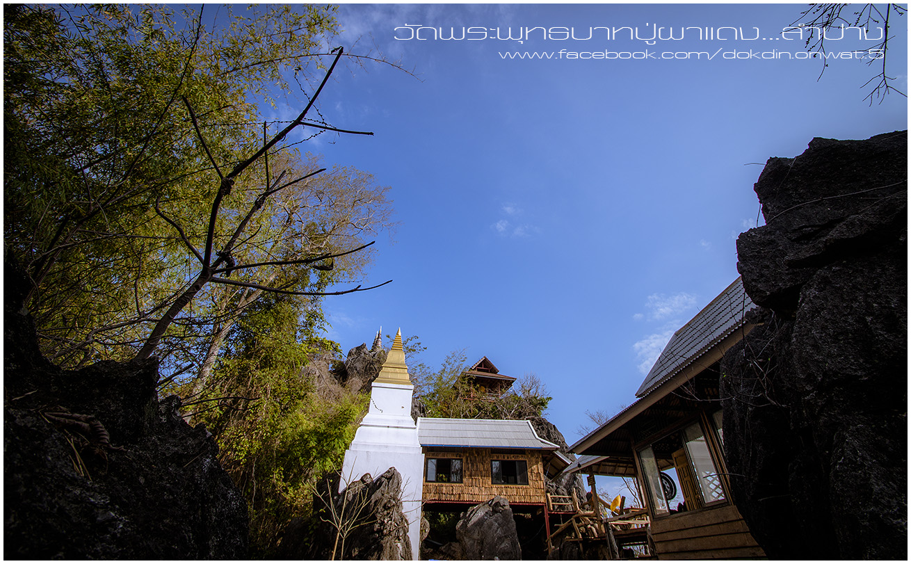 ตั้งอยู่หมู่ที่ 7 บ้านทุ่งทอง อ.แจ้ห่ม จ.ลำปาง นักท่องเที่ยวต้องนำรถยนต์ส่วนตัวมาจอดไว้เพื่อรอคิวนั่งรถสี่ล้อที่คณะกรรมการหมู่บ้านจัดเตรียมไว้บริการ คิดค่าโดยสารคนละ 60 บาท ขึ้นไปบริเวณลานที่พักของวัดอีกชั้นหนึ่ง ก่อนที่จะเดินต่อขึ้นไปยังยอดดอยอีกประมาณเกือบ 1 กิโลเมตรด้วยทางบันไดเหล็กขนาดเล็ก ขณะที่ผู้สูงอายุต้องใช้ไม้เท้าในการพยุงตัว และดึงราวเหล็กประคองตัวไปด้วย โดยต้องแวะพักเป็นจุดก่อนจะถึงยอดดอยเพื่อชมความสวยงามของเจดีย์ลอยฟ้า