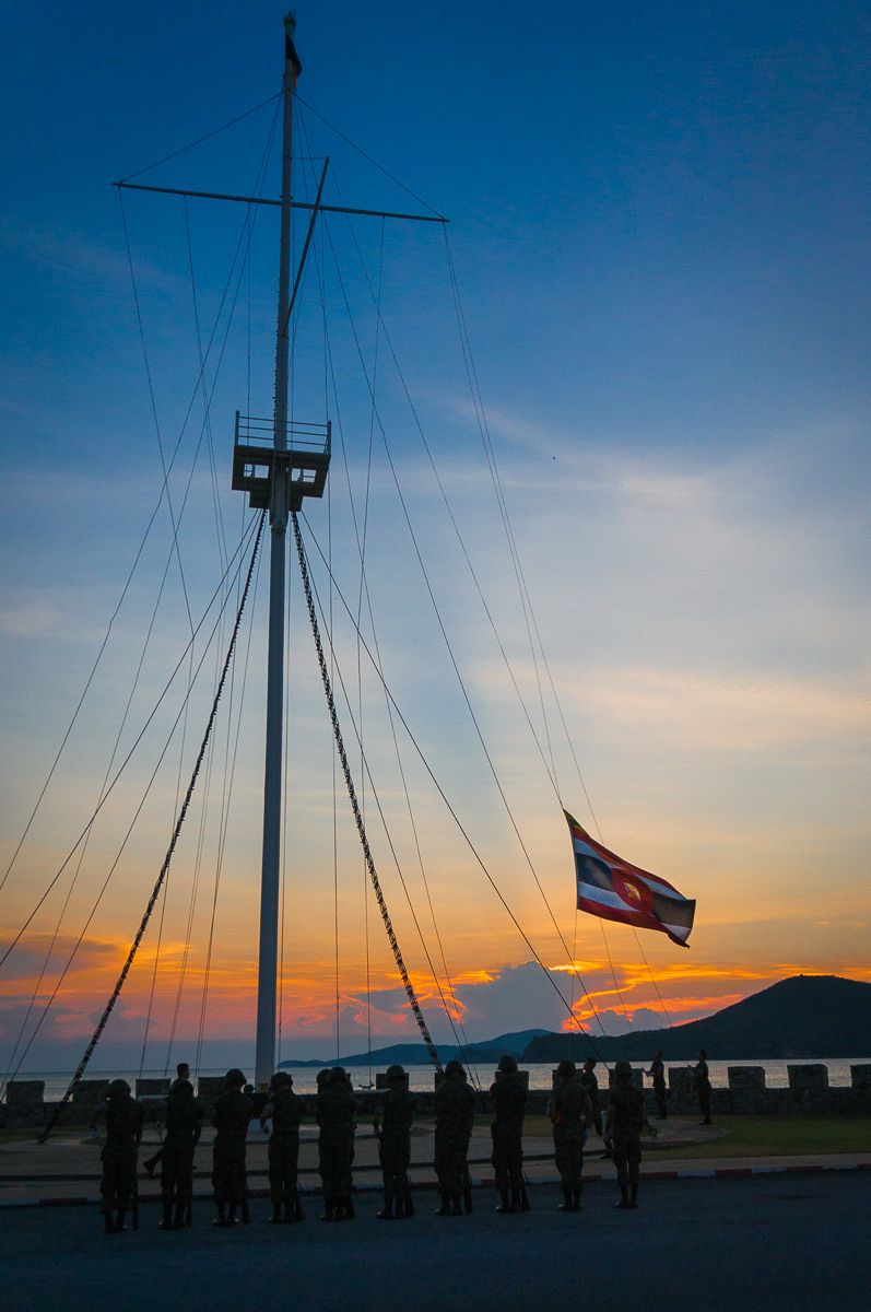เตรียมเชิญธงราชนาวีลงเมื่อยามพระอาทิตย์ตก
