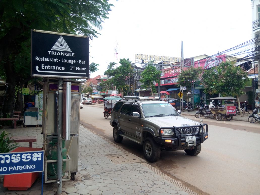 ขับรถมาจอด หน้าศาล องค์จอม องค์เจ็ก ที่สี่แยกกลางเมืองเสียมราฐ