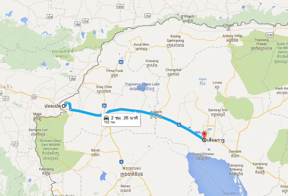 จากเสียมราฐ ขับไปออกด่านปอยเปต ก็แค่ 150 กม. เอง ทางราดยางดีตลอดสาย