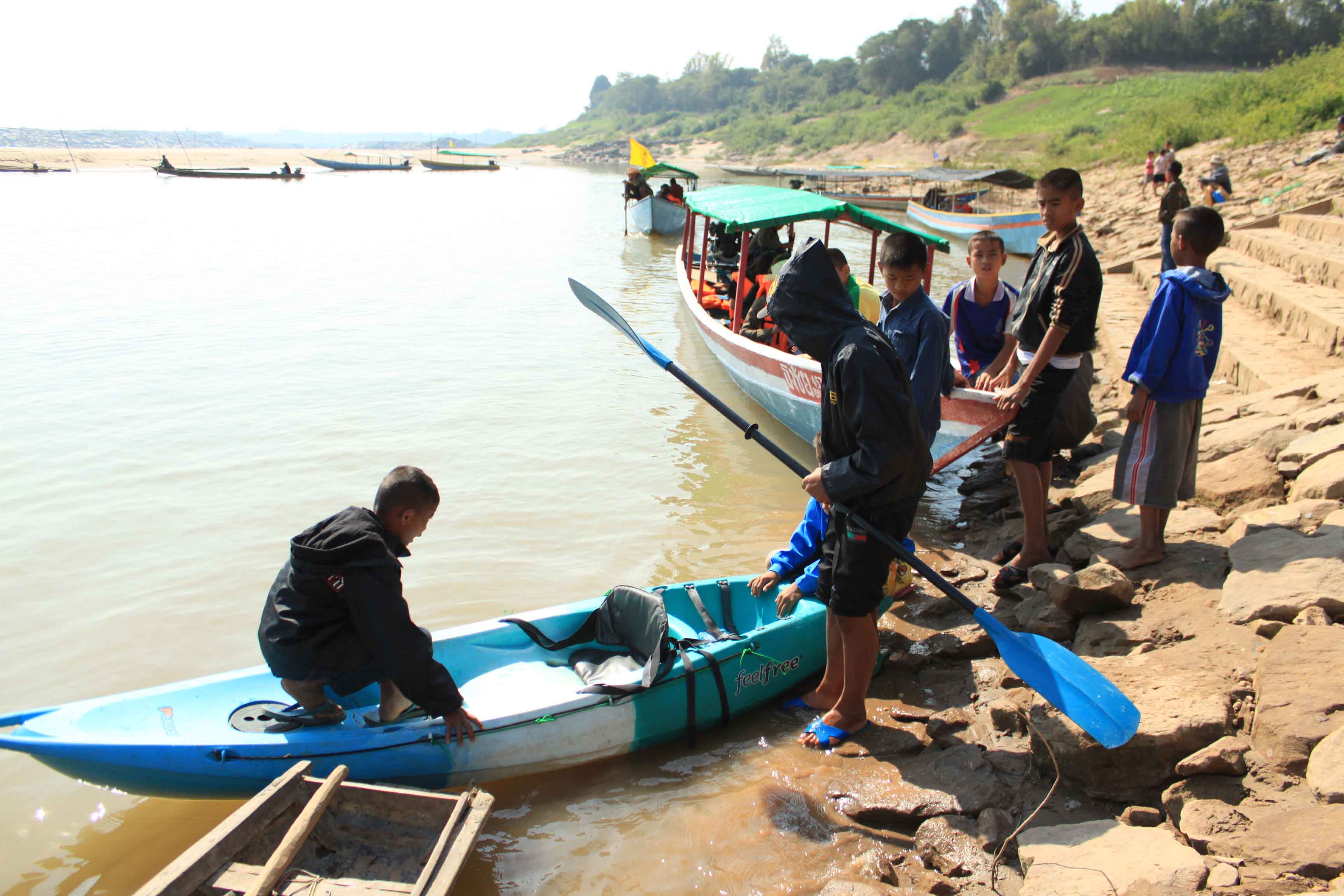 ได้รับการช่วยเหลือ แบกเรือลงน้ำจากน้อง ๆ เจ้าถิ่น