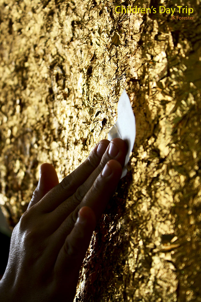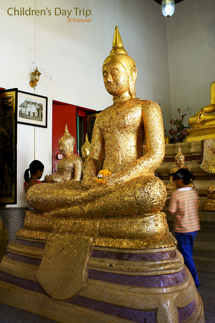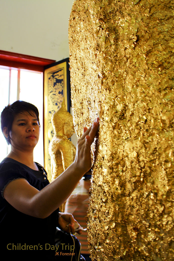 ปิดทองและขอพรกับองค์พระประธานครับ จะได้โชคดีกัน