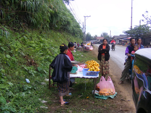 ขับมาเรื่อย ๆ ก็มาเจอแม่ค้าตาคม แม่หญิงลาวรุ่นหลานนั่งขายของอยู่ที่เพิงข้างทาง