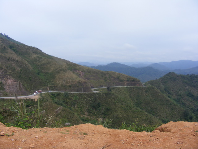 ไหล่ทางก็แคบ หรือ แทบไม่มี แถมเปลี่ยวอีกต่างหาก ผมจอดต้มมาม่าแล้วกินจนอิ่มตรงนี้ มีรถผ่านไม่ถึงสิบคัน ถนนที่เห็นด้านล่างคือเส้นทางที่ผมต้องลุยต่อ