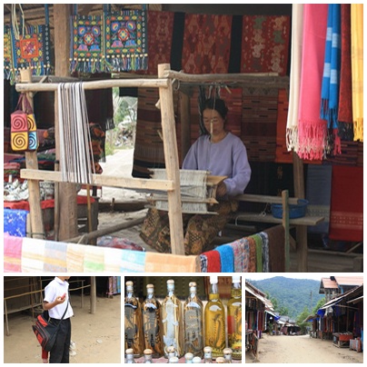ระหว่างทางกลับก่อนขึ้นทางหลวงหมายเลข 13 ก็มีหมู่บ้านทอผ้าเล็ก ๆ ทุกบ้านจะเครื่องทอผ้าแบบนี้เกือบทุกหลัง