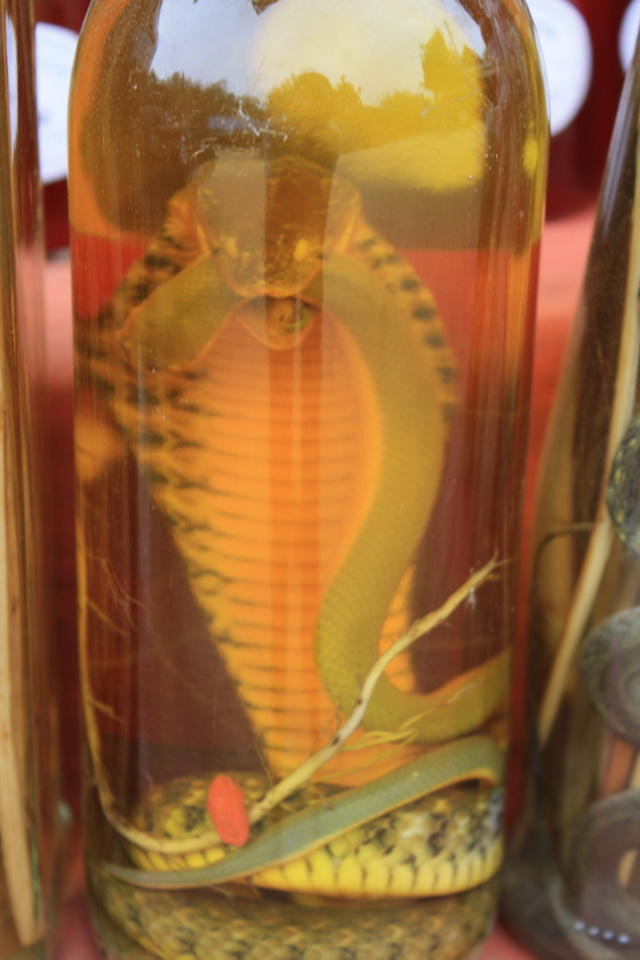 ดูกันชัด ๆ เหล้าผสมสารพัดสัตว์ แม่ค้าบรรยายสรรพคุณว่า สุดยอดยาโด๊ป ผมมองดูแล้วน่าจะจริง เพราะแม่ค้า ทั้งหิ้ว,ทั้งอุ้ม,ทั้งลาก,ทั้งกระเตง