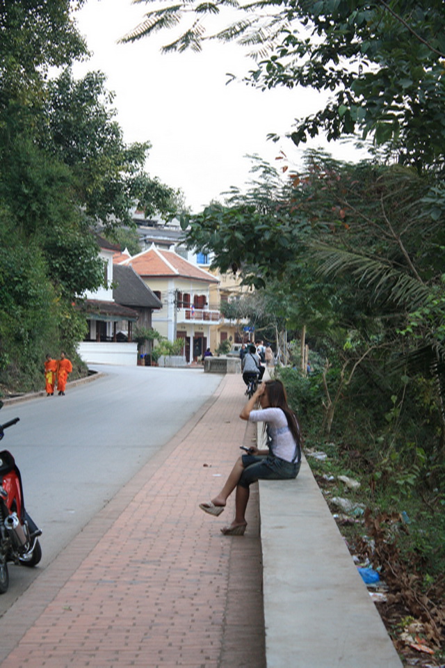 หลวงพระบางเป็นเมืองที่ค่อนข้างเงียบนักท่องเที่ยว ส่วนใหญ่จะเป็นฝรั่ง ซึ่งจะเดิน ๆ ปั่น ๆ รถรามีน้อย โดยเฉพาะเส้นเลียบริมโขงกับน้ำคาน