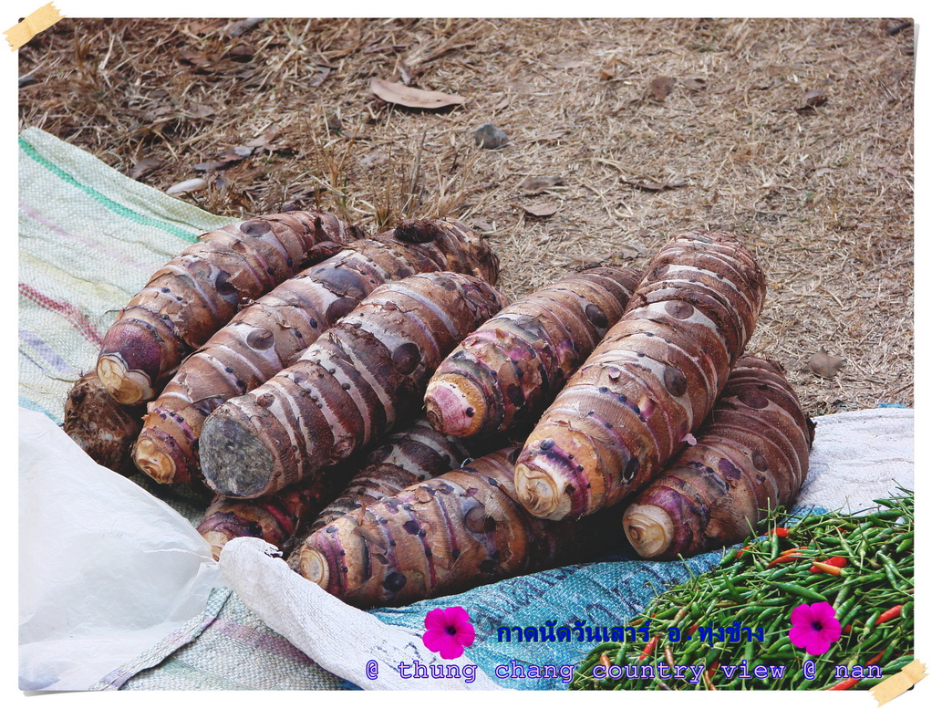 แท่งยาวๆ สีเขียว นั่นคือหน่อหวายครับ มาปลอกทำอาหารอร่อยมากๆ