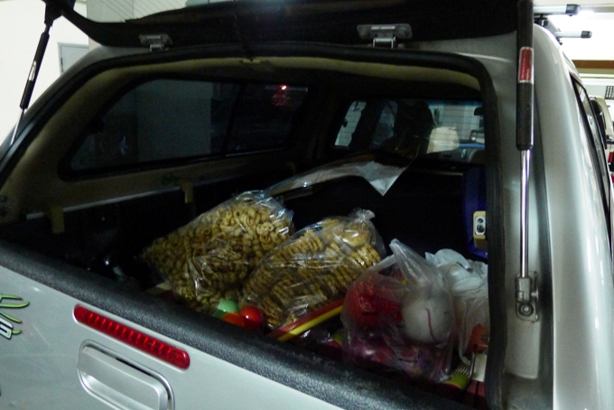 นำเสบียงใส่หลังรถตั้งแต่คืนวันศุกร์