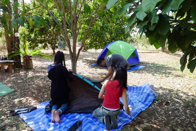 ถึงประมาณบ่ายหน่อยๆ อากาศกำลังดี ทักทายญาติๆของเราเสร็จแล้ว ก็มาหาที่เหมาะๆกางเต้นท์