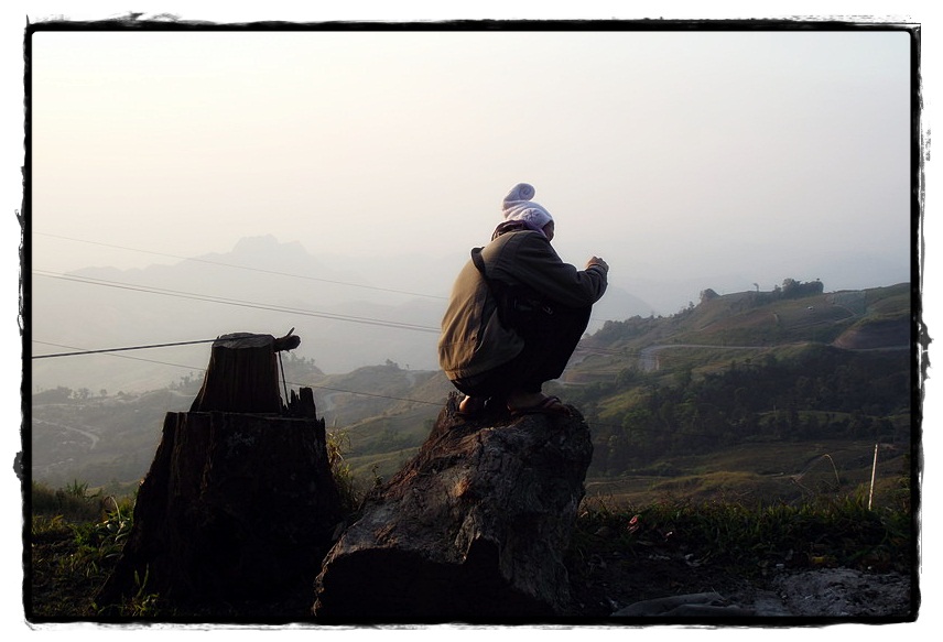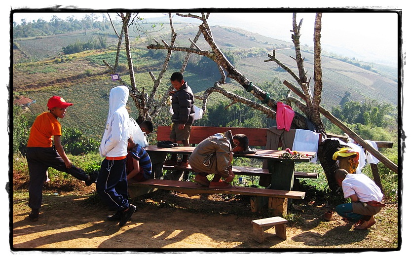 มองเห็นร้านขายผักของม้ง ร้านขายกาแฟ ของที่ระลึกตรงทับเบิกอยู่ข้างล่าง