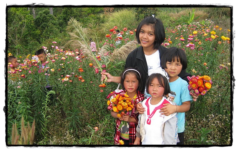 หลังจากนั้น ได้เวลาน้องพาพี่ๆ ไปซนกันบ้าง นี่แอบไปเก็บดอกกระดาษ