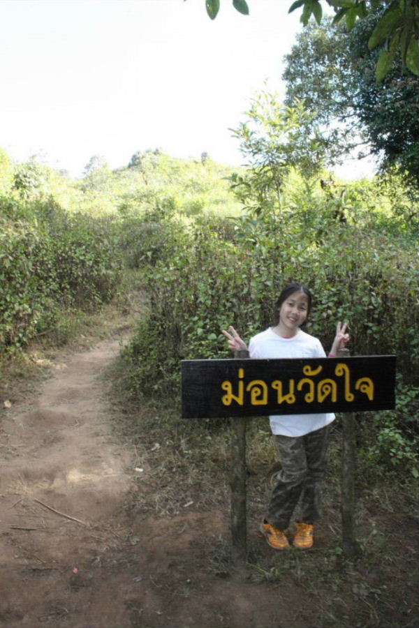 ม่อนวัดใจ เพิ่งเห็นตอนเดินกลับค่ะ เพราะคนนำทางปลุกตั้งแต่ตี4 มองไม่เห็นทางเลยค่ะ ถ้าเห็นก่อนสงสัยแม่คงไม่เดินต่อแน่ แต่แม่ไม่รู้ว่าระยะทางเท่าไหร่ แถมคนนำทางบอกว่า เคยมีคนพบเสือ แม่เลยไม่หยุดกลางทาง