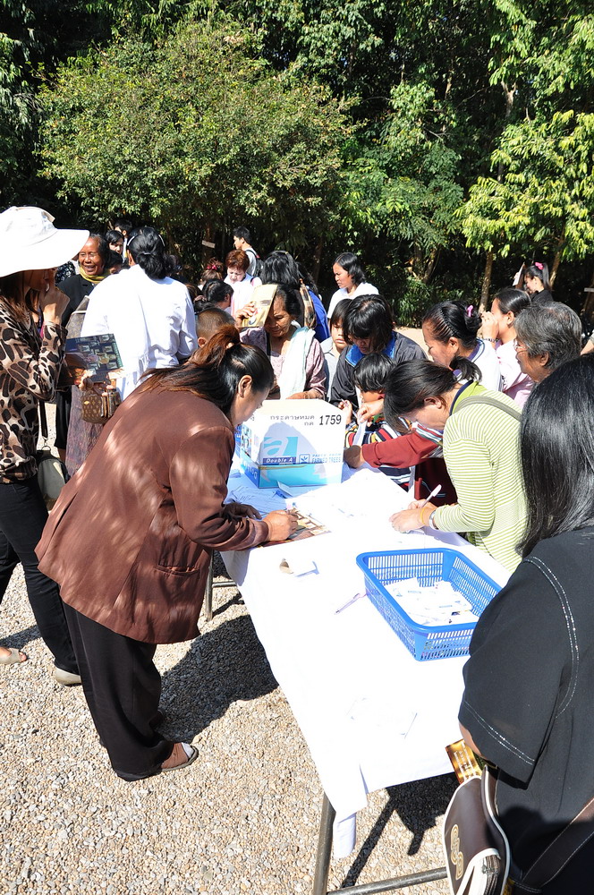 น้าๆ ป้าๆ กำลังเขียนใบปวรนาบัตรครับ