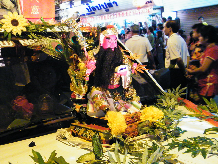 มือซ้ายถือคัมภีร์ มือขวา ถือง้าว เทพเจ้าแห่งความซื่อสัตย์ รักษาวาจา