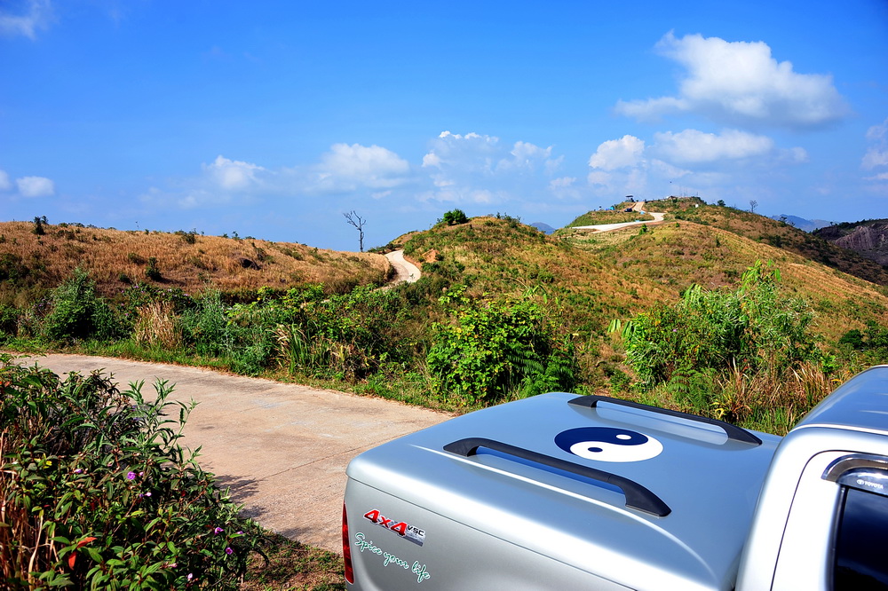 ขับขึ้นเขามาสักพักก็มาถึงจุดชมวิว ครับ เส้นทางเป็นถนนดำครับบางช่วงมีร่องรอยของดินถล่มลงมาทำให้พื้นผิวการจราจรแคบลงไปบ้างครับ มีร่องรอยการชนรั้วกั้นขอบทางให้เห็นเป็นระยะๆ หากขับไม่ประมาทและใช้แตรเป็นระยะแล้วผมว่าน่าปลอดภัยมากกว่าครับ ความชันของภูเขาน้อยกว่าทางเหนือที่ผ่านมาครับ
